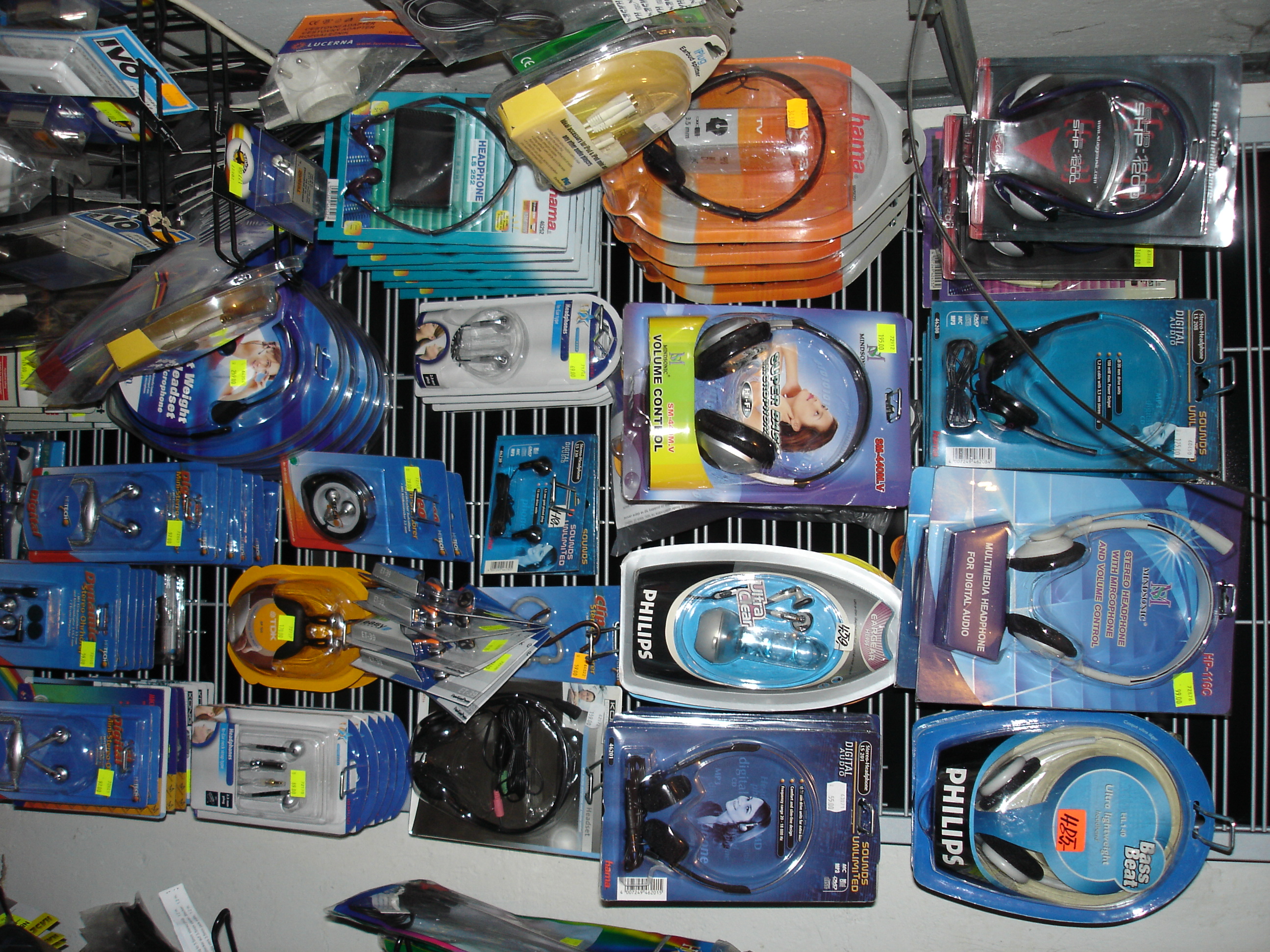 všech druhů : audio-video a PC redukce a propojovací šňůry.